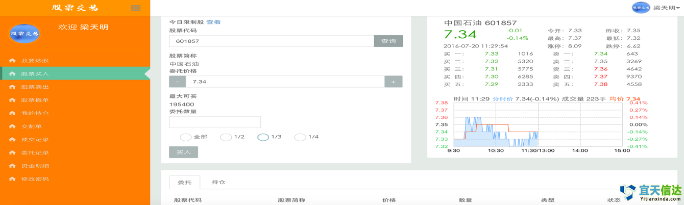所屬行業(yè):金融軟件開發(fā) 服務(wù)內(nèi)容: 管理系統(tǒng) 成果摘要:北京軟件開發(fā)公司股票交易系統(tǒng)為投資公司內(nèi)部維護交易客戶而定制開發(fā)的一款實時股票查詢、交易軟件,可通過系統(tǒng)增加股票、購買股票,買入賣出,可撤單充值等操作,主界面及部