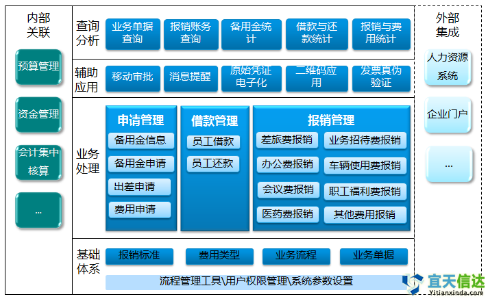 員工報銷其與預算管理模塊、資金管理模塊、賬務模塊無縫銜接。通過預算控制方案進行成本預算和現金流預算控制;對無需付款業務可以直接生成財務憑證;對于需進行付款的報銷業務,直接發起電子支付申請,付款后自動生成記賬憑證,提高核算和支付效率。