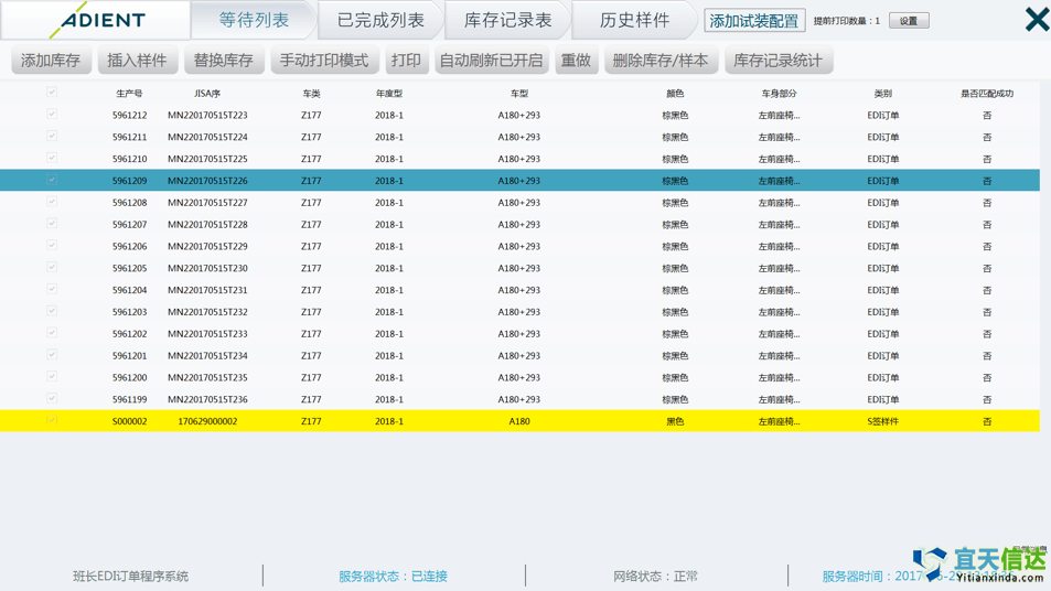 成果摘要:北京軟件公司 宜天信達(dá)-完成奔馳汽車座椅Z177線生產(chǎn)線MES系統(tǒng)設(shè)計(jì)、開發(fā)、安裝、調(diào)試與PLC交互,主要功能為訂單接收、下發(fā)、生產(chǎn)防錯(cuò)處理、機(jī)器人掃碼、盒裝驗(yàn)證等功能。