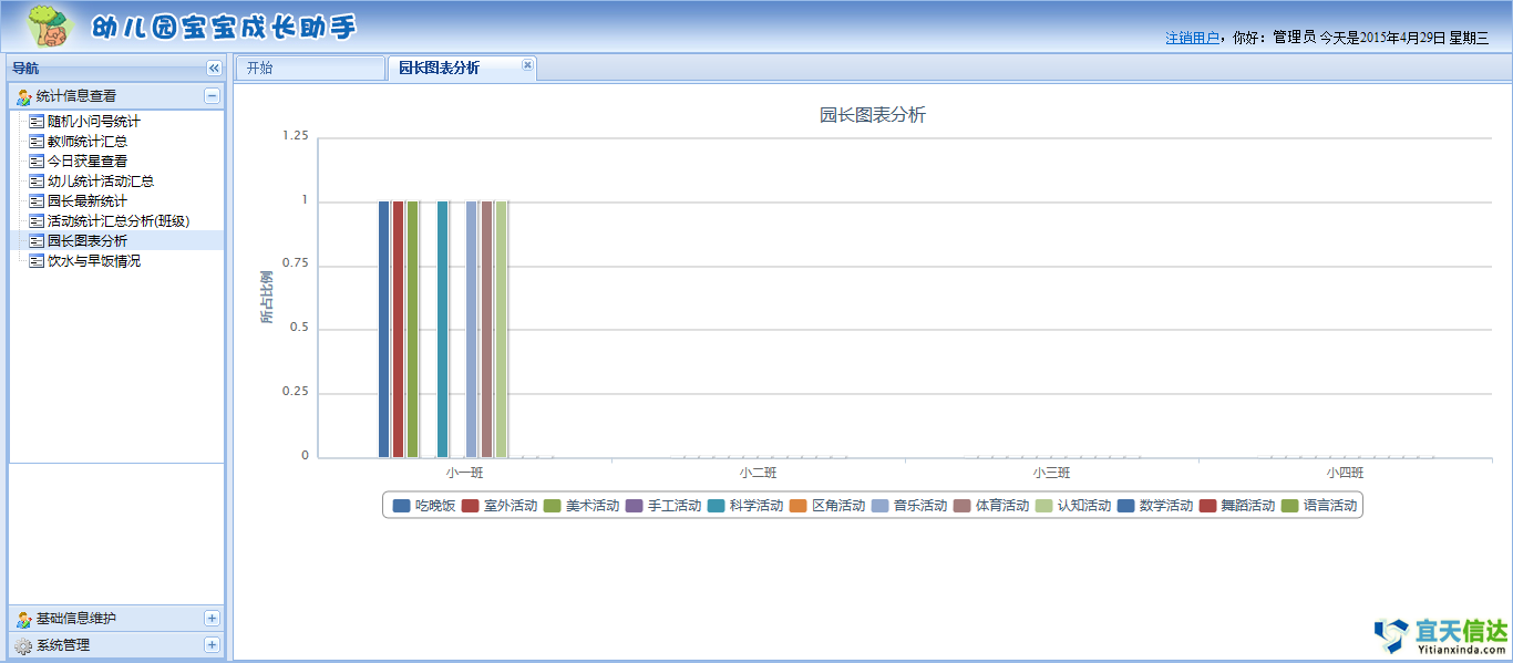 成果摘要:記錄孩子每天活動的情況和孩子的興趣愛好趨向。完善其他產品只能提供今天的課程表或開展的活動,真正做到關注孩子今天喜歡什么活動,關注孩子個性發展;